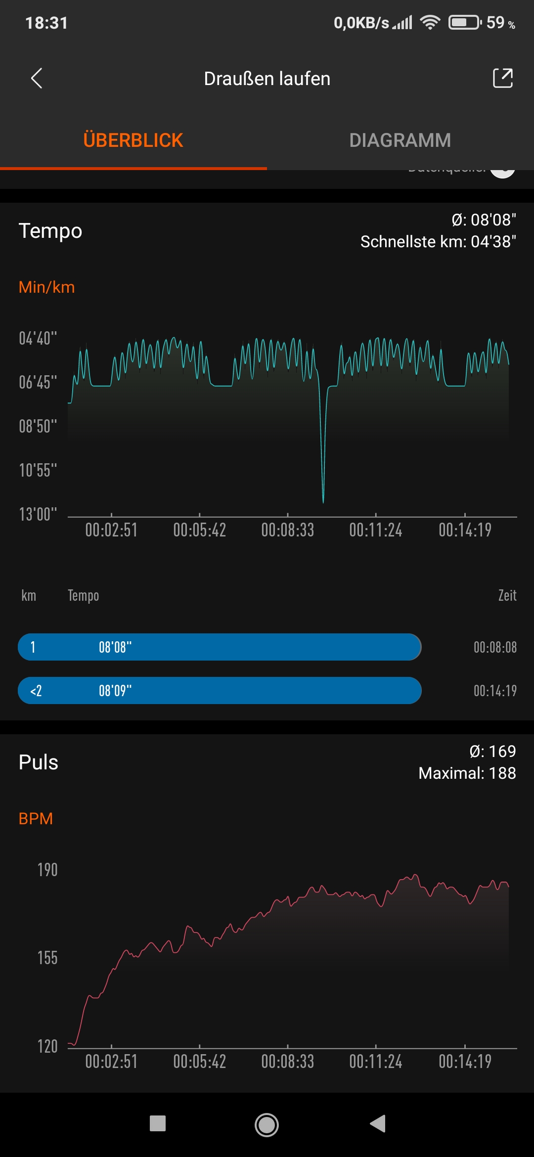 Edit: Meine Beste Leistung war bis jetzt 1,75 km in 14:19 Minuten