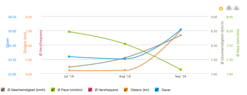 Ich bin trotzdem nicht ganz zufrieden, ich hätte gerne mehr gemacht, aber in der aktuellen Belastungssituation (Uni, Arbeit + Doktorarbeit) und der Wettersituation den ganzen Sommer über sollte ich wohl zufrieden damit sein dass ich kontinuierlich trainiert habe.