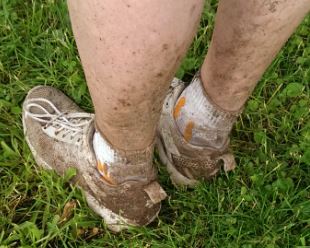 Der erste Lichtblick kam bei Km 50, raus aus dem Wald, ein Getränkestand und der Regen hörte plötzlich komplett auf. Dazu kamen noch 5 km Asphalt (kleiner Waldweg), leicht bergab, ein Traum für die Füße und den Kopf. Dazu wurde es langsam wärmer, gute Laune kam wieder auf, auch wenn die Füße sich schon ordentlich meldeten. Bei Km 54 ein größerer Punkt für die Teamläufer / Staffelläufer. Im Anschluß ging es wieder lang berauf über Waldwege und wie sollte es auch anders sein ... der Regen war augenblicklich wieder da. Als ob das heute abgesprochen war, wie ärgere ich alle Teilnehmer / Zuschauer am meisten. Dementsprechend sahen die ganzen Weg dann auch aus, Pfützenhopping war angesagt, der Schlamm hielt sich glücklicherweise in Grenzen.