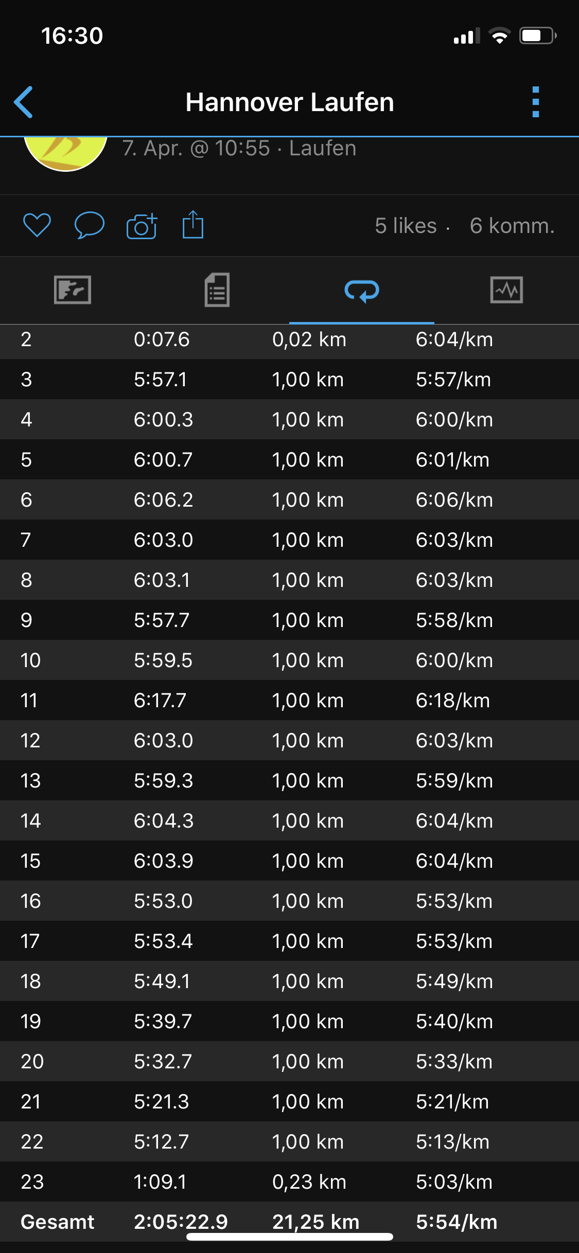 Ab km 18 wollte ich noch etwas schneller, das wurde dann langsam richtig „aua“, allerdings mehr in den Muskeln. Und: es lief :hurra: