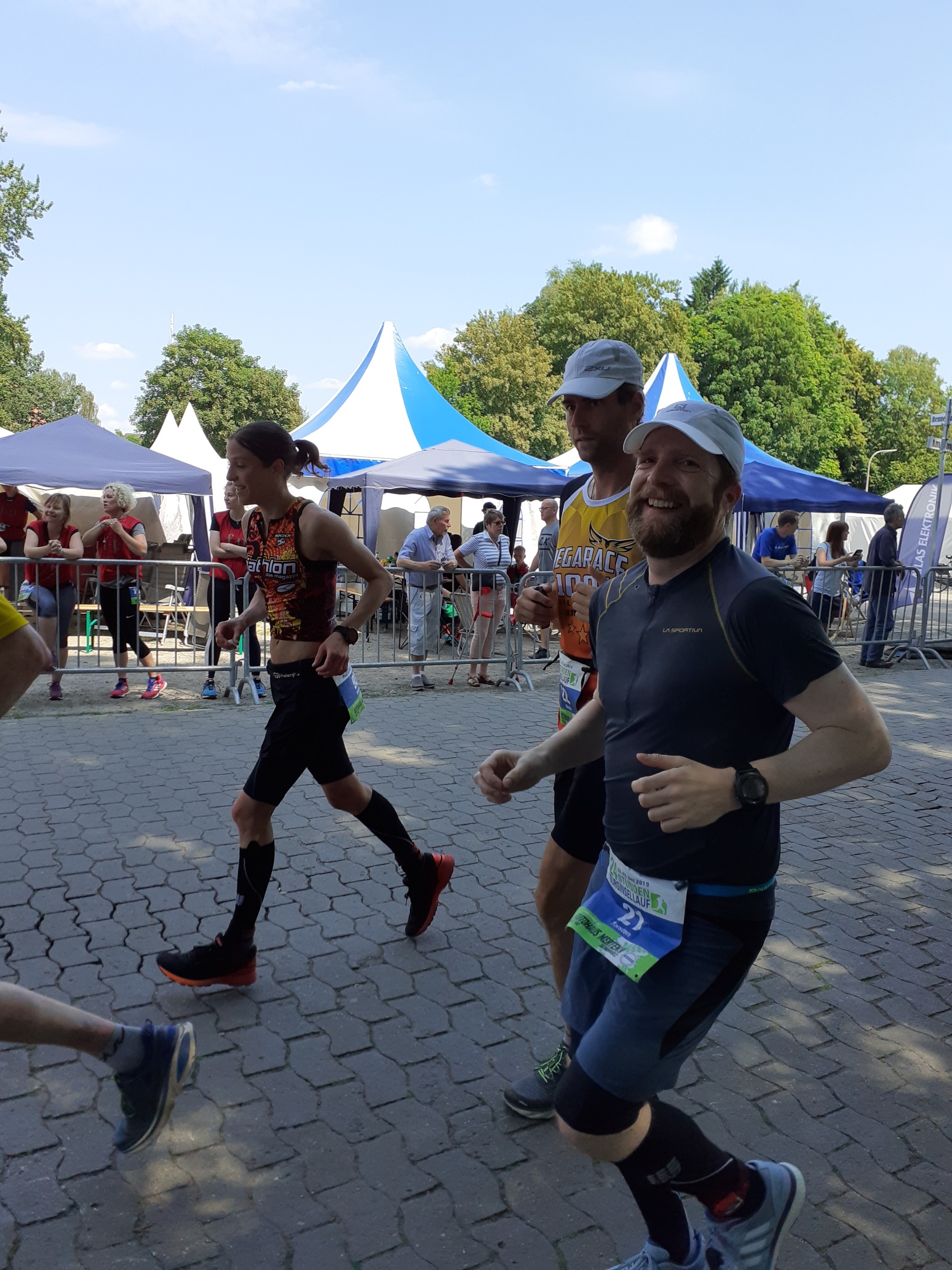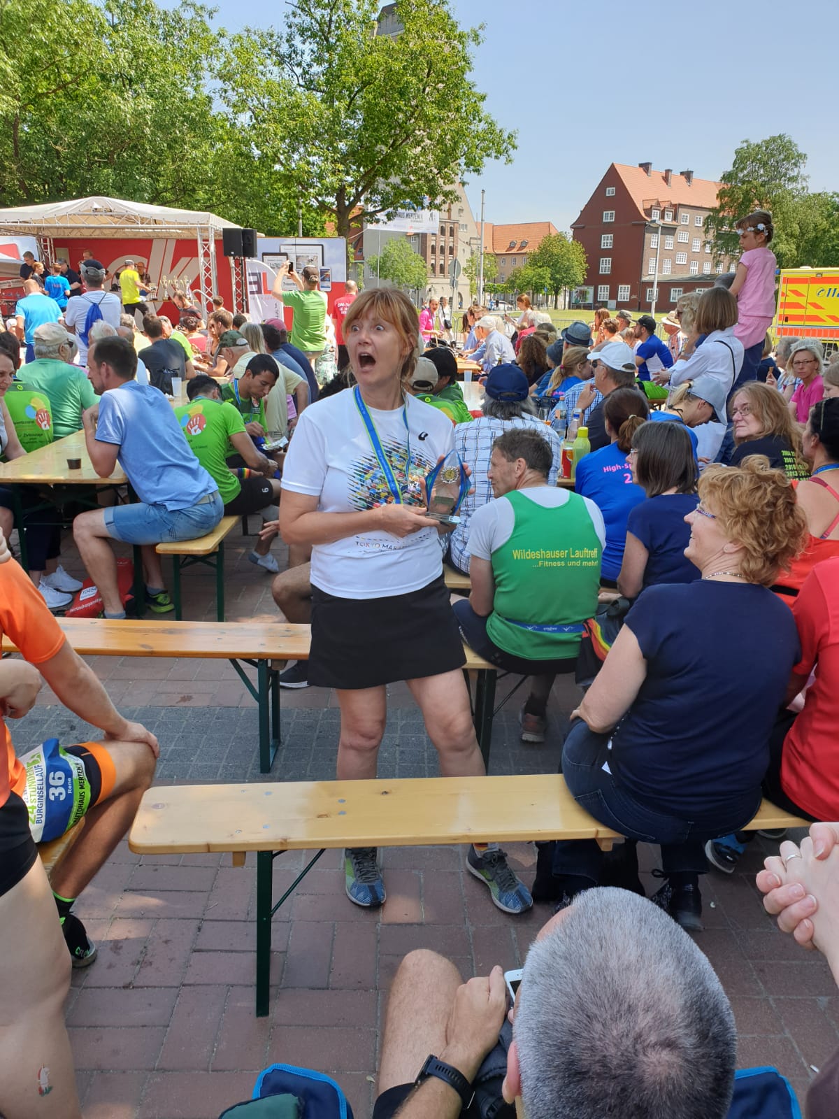 @Isse Auch mit Dir habe ich am Samstag wirklich mitgelitten. Zwar hast Du immer wieder verkündet, Du seiest ja nur zum Spaß da. Man merkte Dir aber an, dass die Schmerzen schon ganz schön an Dir fraßen. Als ich Dich dann am Sonntag Morgen gut gelaunt mit Deinem Mann um die Strecke marschieren sah, hat mich das sehr glücklich gemacht. Völlig baff war ich, als ich bei einem Blick auf mein Telefon feststellte, dass Du zwischenzeitlich auf 1 oder 2 Runden an die Führende Deiner AK herangerutscht warst. Echt schockiert war ich, als ich, nachdem ich Dir unvorsichtig und verantwortungslos von dieser Situation berichtete, plötzlich und augenblicklich wieder das kämpferische Blitzen in Deinen Augen sah und Du merklich Tempo angezogen hast. Ich hatte wahnsinnig Angst, dass Du nun Deinem Knie den Rest gibst und ich Dich hierzu angestachelt haben könnte. Als ich Dich dann irgendwann wieder laufen sah, wurde mir ganz schlecht. Eine lustige Situation spielte sich einige Runden später ab. Du lagst inzwischen längst in Führung und die zweite kam vielleicht 50m vor Dir an uns vorbei. Dies lies ich Dich wissen in der Hoffnung, Du würdest Dich Deines sicheren Sieges gewiss nun ruhiger machen. Das Gegenteil war der Fall, Du setztest Du einem Zwischensprint an, um Deine Konkurrentin noch einmal zu überholen. Mannomann, Du machst Sachen. Also: Herzlichen Glückwunsch zur Verteidigung des AK Sieges. Sonderbarer Verlauf eines Wettkampfs aber am Ende die Konkurrentin konsequenzt niedergekämpft. Dass Du nun in Berlin nicht starten wirst, ist sehr schade, aber ganz sicher mit Blick auf Dein großes Ziel richtig. Weiterhin gute Besserung!