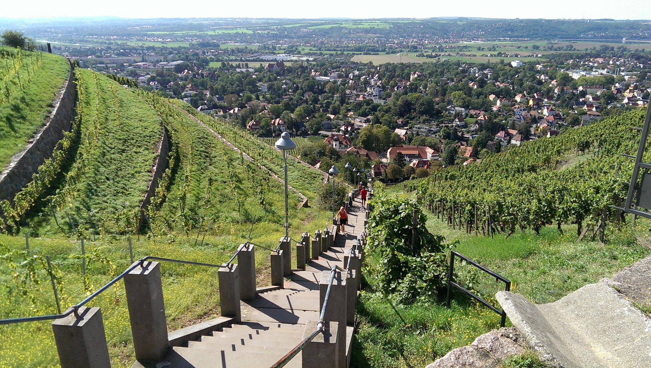 Am Nachmittag ging es bei schönstem Sonnenschein und 18 Grad los, der Blick ins grüne Elbe-Wein-Tal war einfach traumhaft. Die Temperaturen haben den Puls etwas höher als sonst schlagen lassen, fand es aber angenehm. Die original Laufstrecke mit Start/Ziel und dem Wendepunkt sind farbig markiert, hatte ich so nicht erwartet, top.