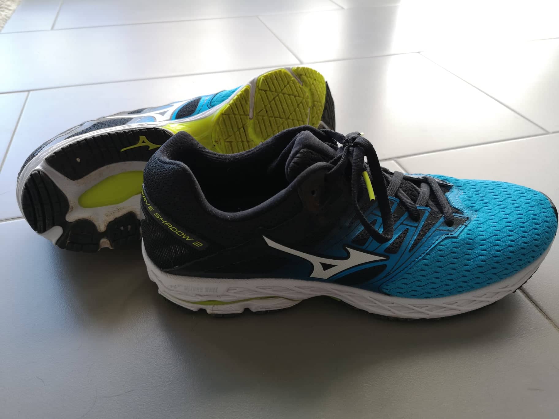 Ich verkaufe den MIZUNO Wave Shadow 2 in EU44 / US10. in der Farbe Blue jewel/silver/safety yellow