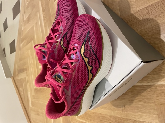 Die Schuhe wurden 2x 11km gelaufen, sind mir leider jedoch eine halbe Nummer zu klein. Der Laufleistung entsprechend ist der Schuh in einem top Zustand (wurde beide Male bei gutem Wetter getragen).