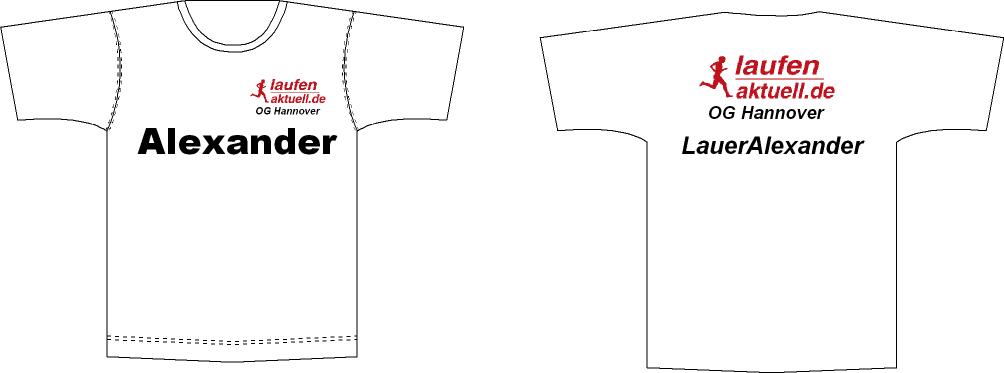 BodoW hat geschrieben:Ganz toll fände ich das "laufen-aktuell.de" Logo (siehe rechts oben unter dem runnersworld Balken) darunter vielleicht OG Hannover. Die Kombination mit dem Namen des Läufers wäre natürlich super. Das alles auf dem Rücken. Und vorne oben links nur laufen aktuell.de mit OG Hannover in klein.