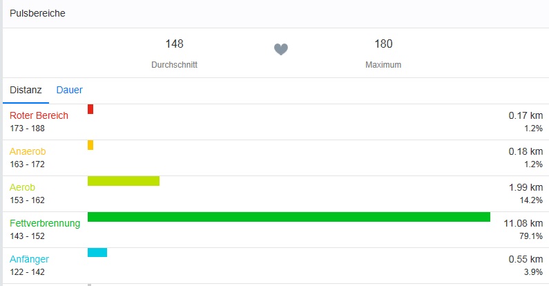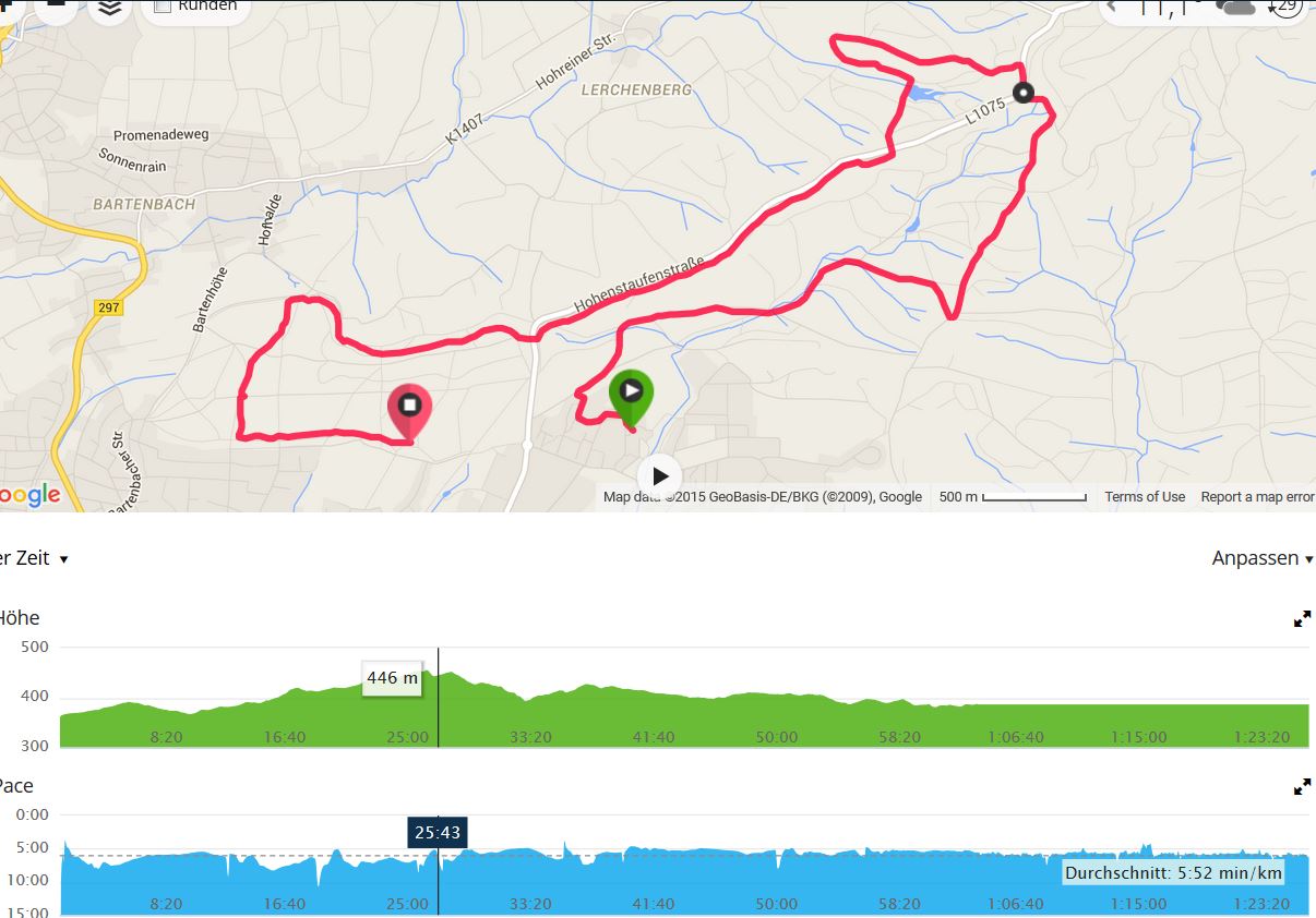 Die Uhr war durchgehend auf einem absolut zufriedenstellendem Niveau, was Pace und Distanz anbelangt und das nur mit dem Bewegungssensor. Das hätte ich so nicht erwartet.
