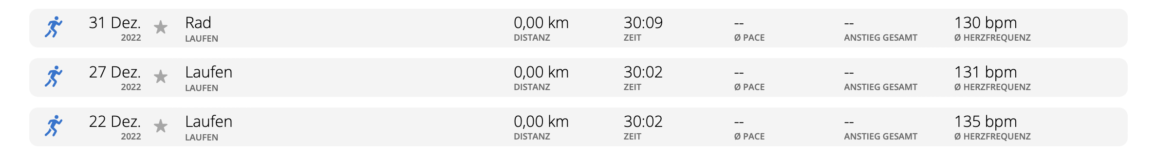 Eine weitere Möglichkeit wäre, die Einheit mit dem passenden vorhandenen Aktivitätsprofil zu starten, die das Gerät zur Auswahl anbietet. Und dabei hast Du auch die Möglichkeit, der Aktivität einen für Dich passenderen Namen (z.B. Indoor-Cycling) zu geben. In Connect wird diese Einheit dann logischerweise auch als solche hochgeladen.