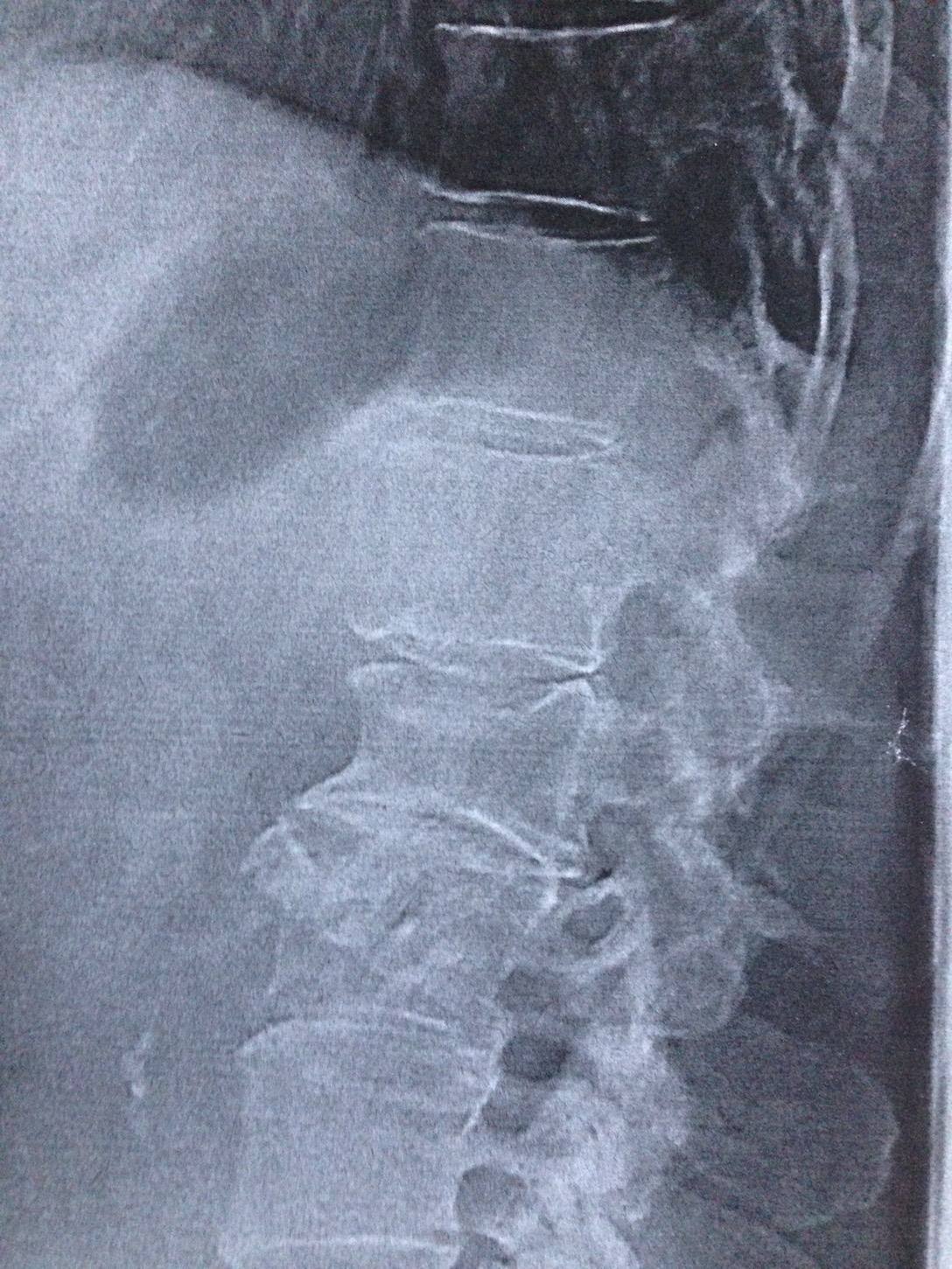 Neee, da ist nix drin.... aber du kannst sicher erkennen, dass da zwei Wirbel deutlich anders aussehen von der Form her als der unterste auf dem Bild. Der über dem untersten und der über diesem sind ziemlich deformiert... (ist aber eigentlich auch egal)