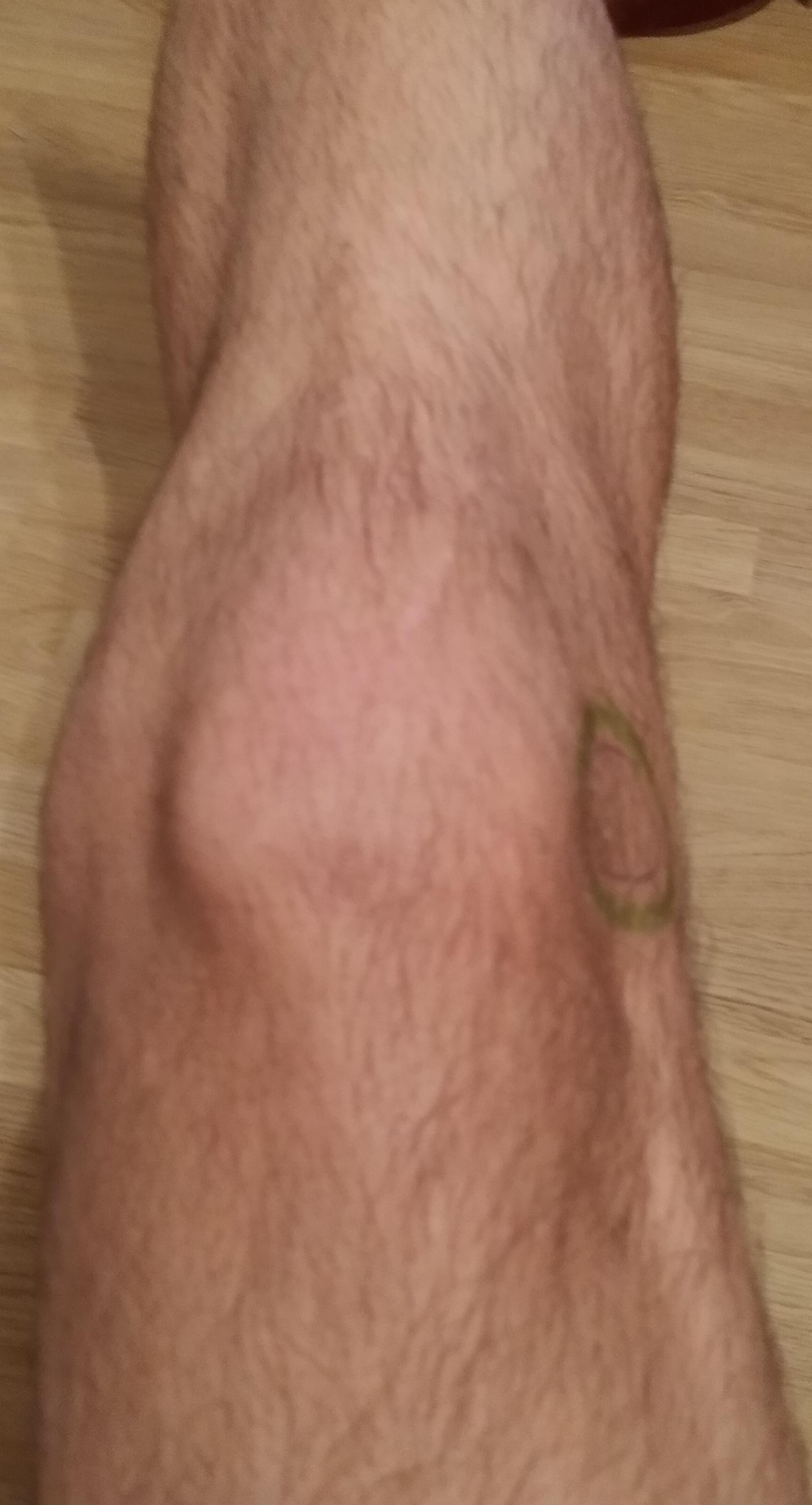 Wie auf dem Bild zu sehen, habe ich Schmerzen am rechten Knie, besonders wenn ich mit dem Daumen reindrücke oder auf den Bereich draufklopfe. Der Schmerz tritt bei jeden Lauf auf. Ich kann leider keine schnellen Tempoläufe mehr machen. Ich kann so langsam laufen wie ich will und die Schmerzen treten nach ein paar Kilometern auf. Aber ein paar Stunden nach der Trainingseinheit ist der Schmerz wieder weg. Komisch ist auch dass mir 3 Stunden Radfahren oder Steppen nichts ausmachen. Es ist wirklich nur beim Laufen. Und manchmal spür ich den Schmerz beim bergab Treppen gehen.