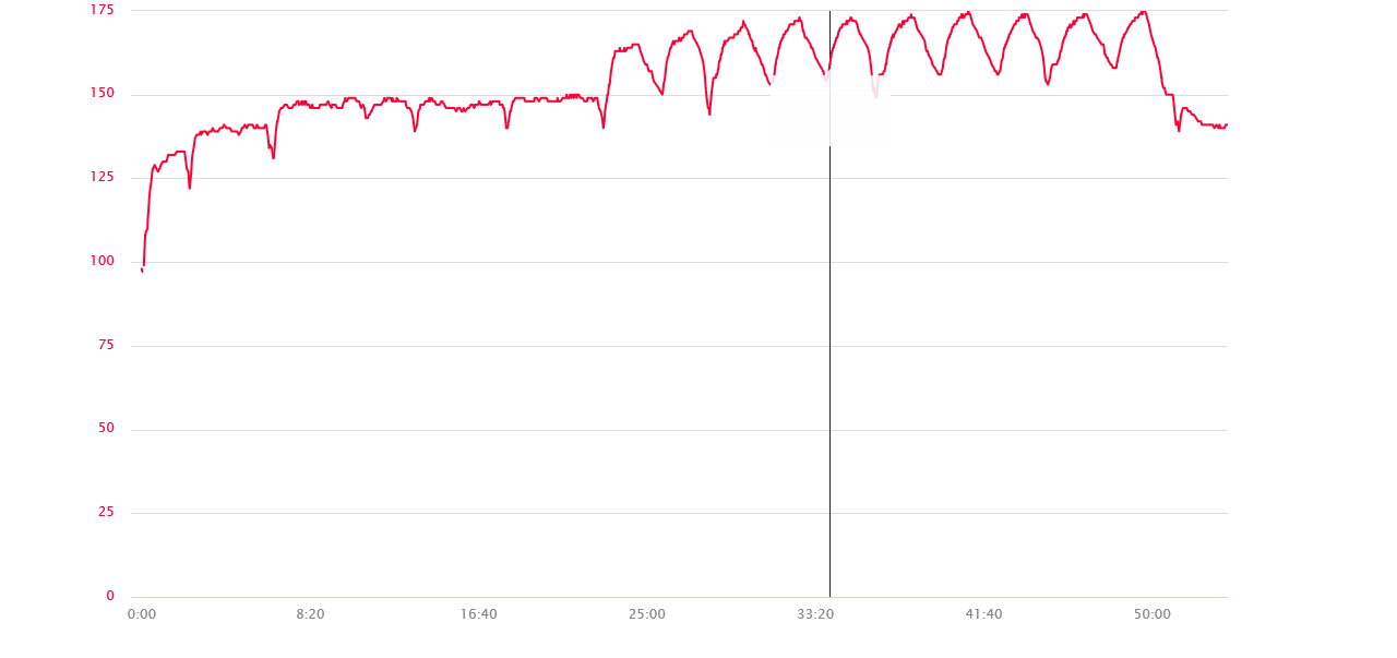 Ein typischer Plot sieht dann bei mir z.B. so aus (HF=rote Kurve; geschätztes HFmax: 180 oder knapp drüber):