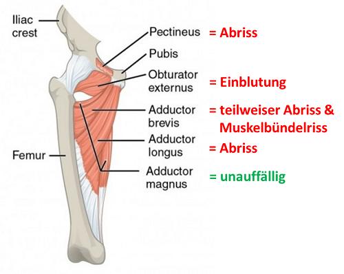 ....so lautet die Kurzform meiner Diagnose. Ich bin bei einem Geländelauf gestürzt und ein wenig den Hang hinab gerollt. Dabei habe ich mir dann wohl den Oberschenkel verdreht. Um hier nicht allzuviele medizinische Begriffe zu benutzen, habe ich eine Zusammenfassung als Grafik angehängt. Gemäß Einschätzung bei uns in der Unfallklinik bringt eine OP keine bessere Prognose als eine Heilung auf konservativem Weg.