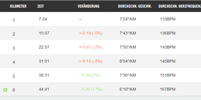 5 km hab ich mich total wohl gefühlt, war ganz bei mir und ab dann hab ich Tempo gesteigert. gut 500 m fühlte sich das gut an und dann hab ich noch ein paar Hundert Meter weiter gemacht.