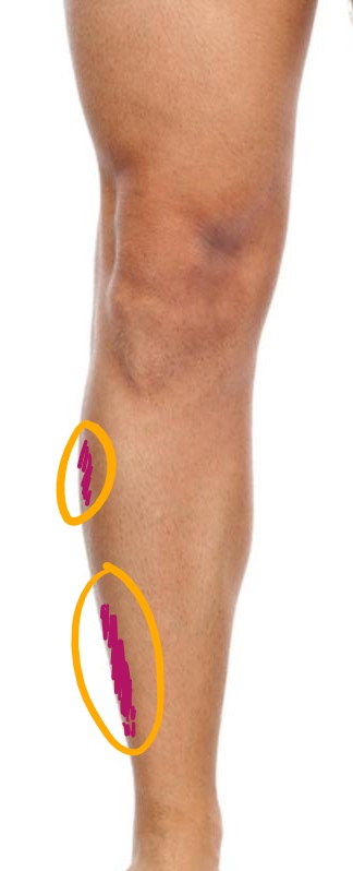 Schmerzbereich: Unterschenkel entlang Tibialis Anterior