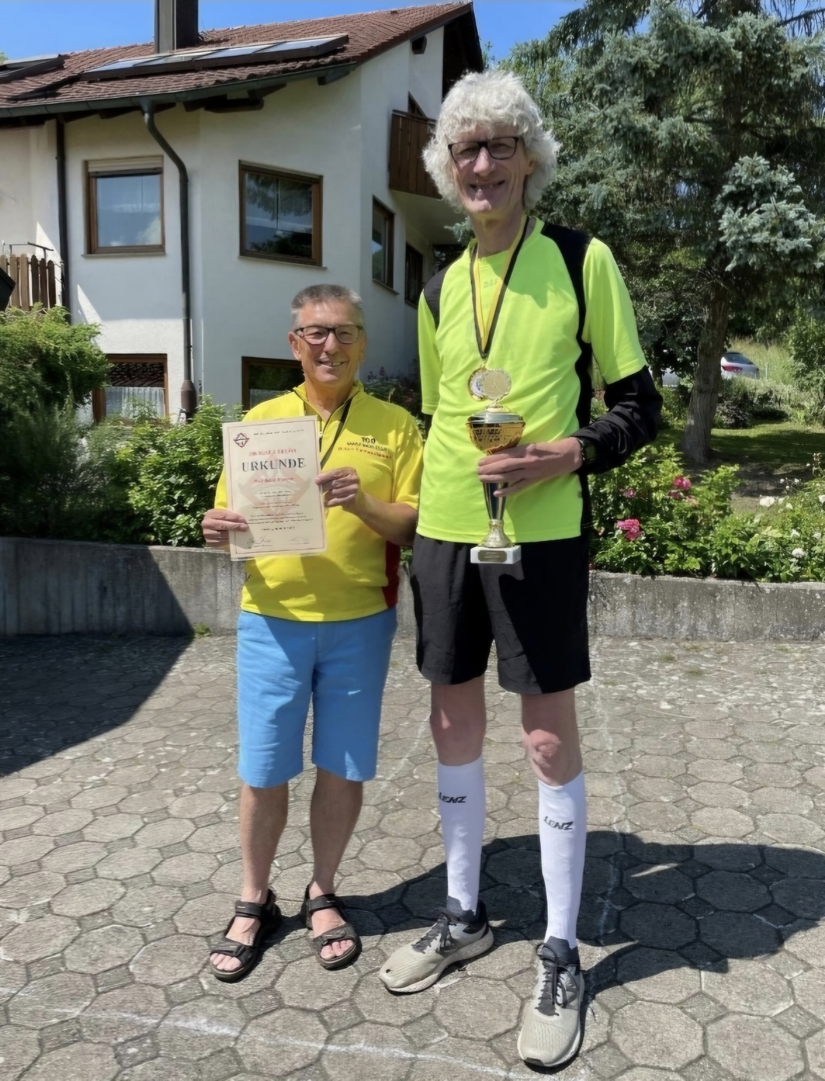 der Jubiläumsurkunde vom Marathon100-Club, hat Er noch einen Pokal organisiert und