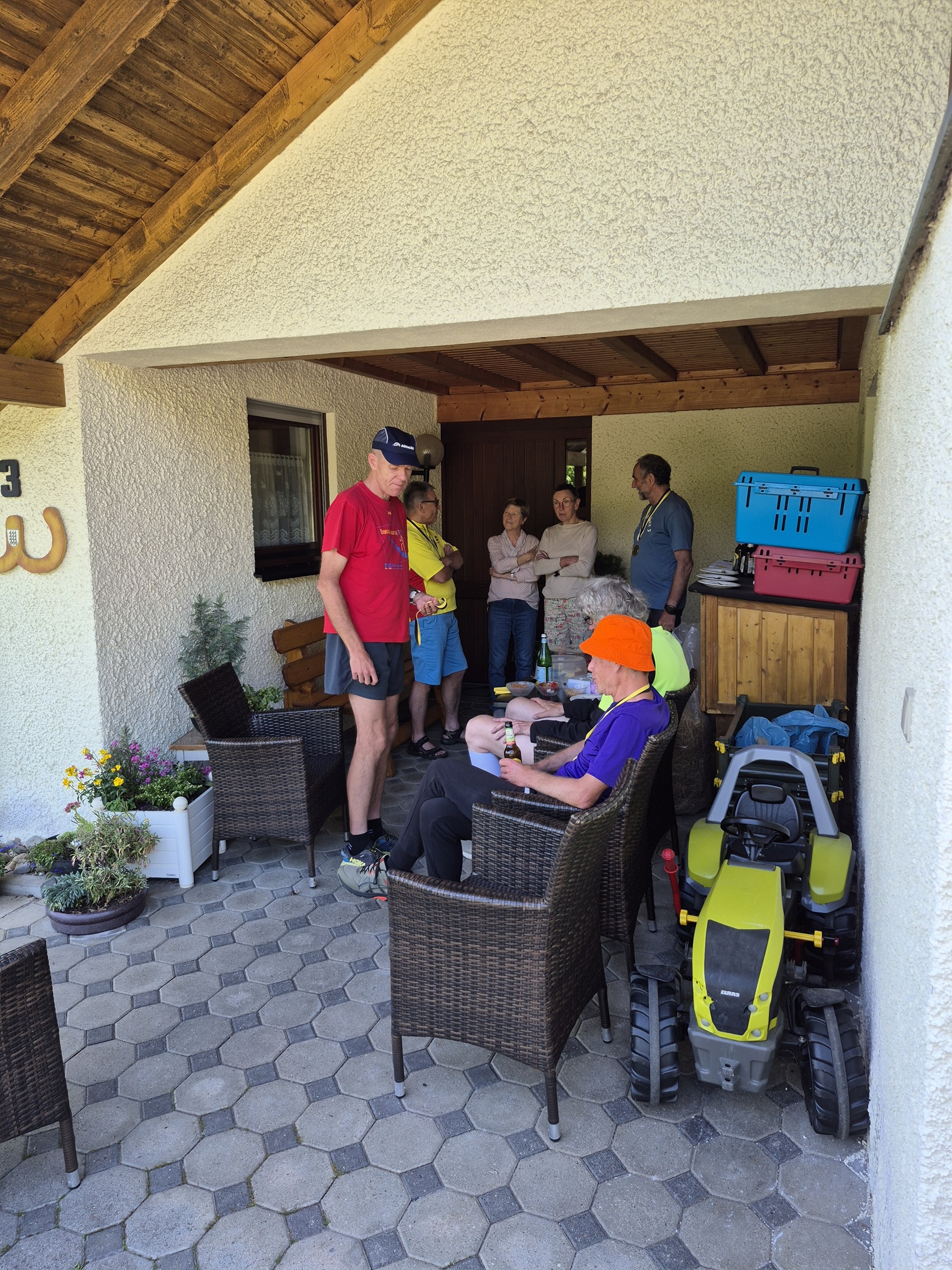 trockene Sachen an und gehe rüber zu Ulli. Dort sitzen schon einige Teilnehmer(innen)