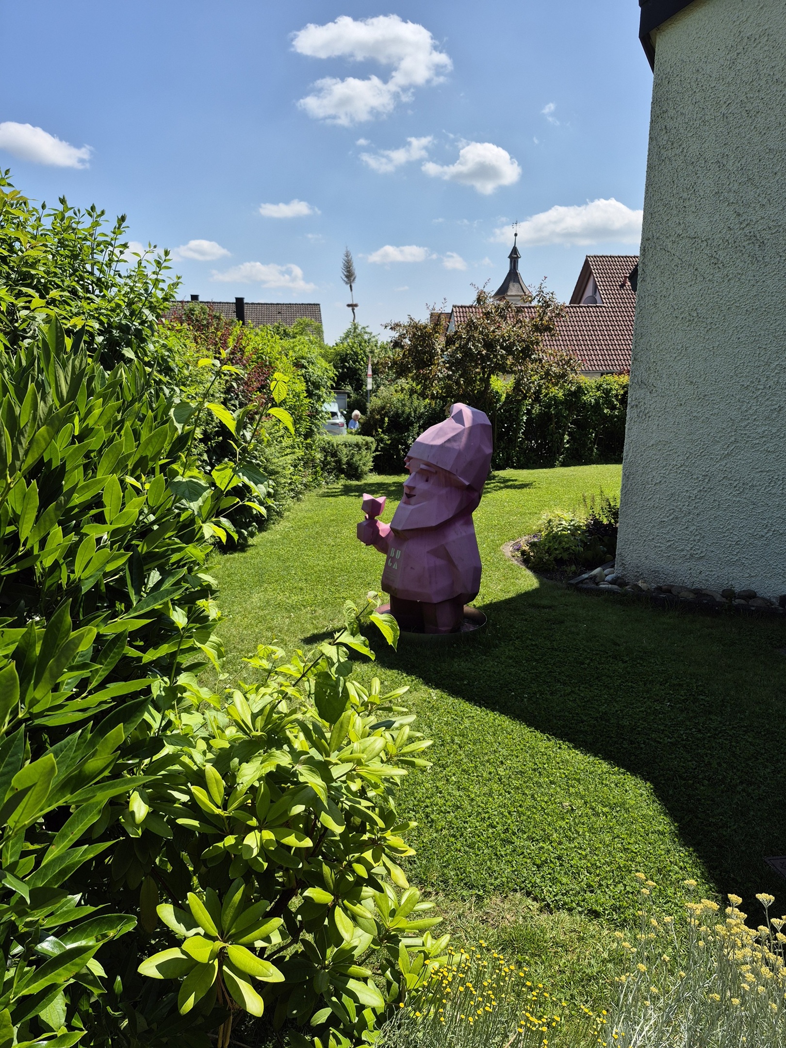 1. Man sieht ihn von der Straße aus - der BUGA-Gartenzwerg in Ulli's Garten