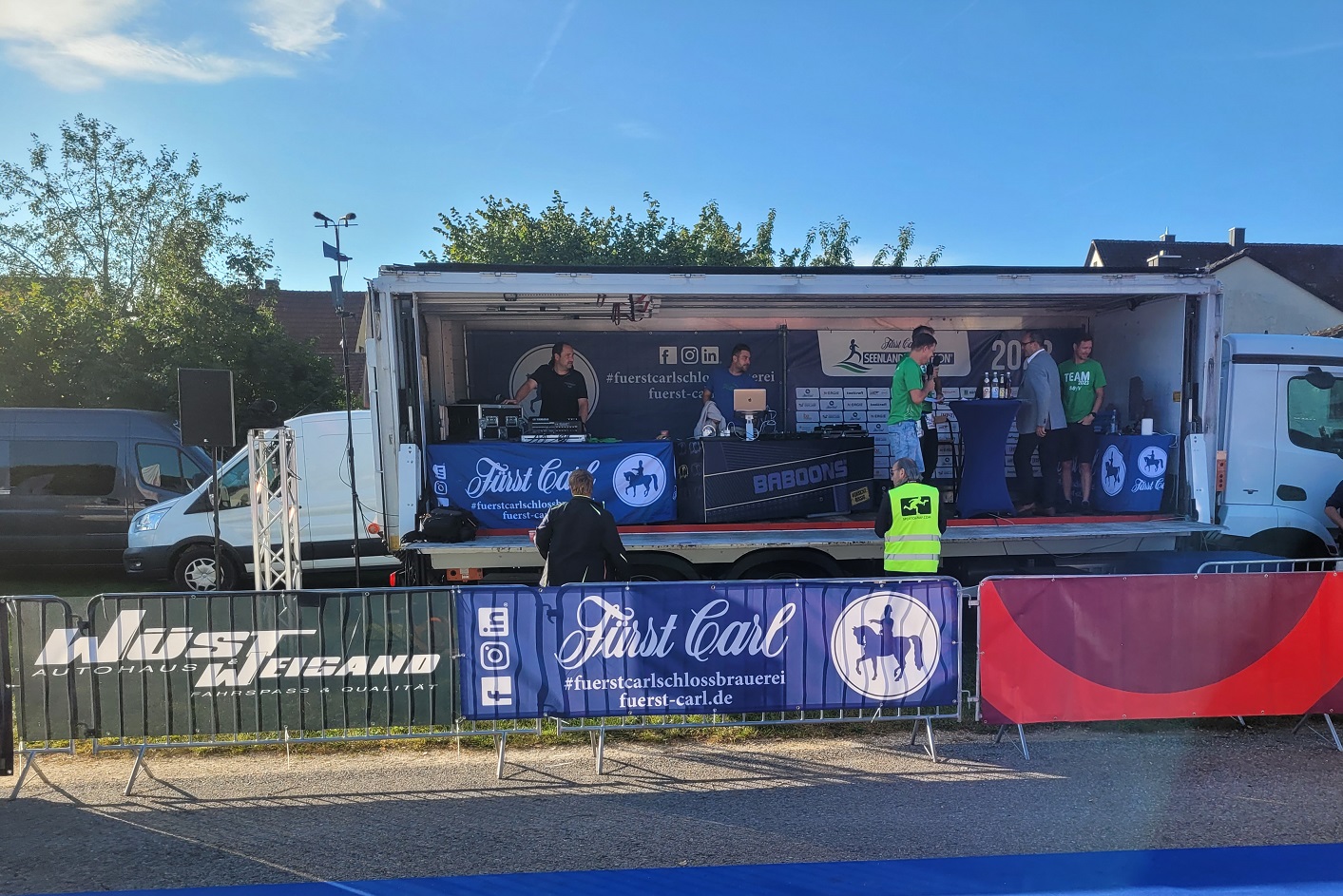 Die letzten hundert Meter auf der Landstraße wird gefeiert und links rein auf den Festplatz...