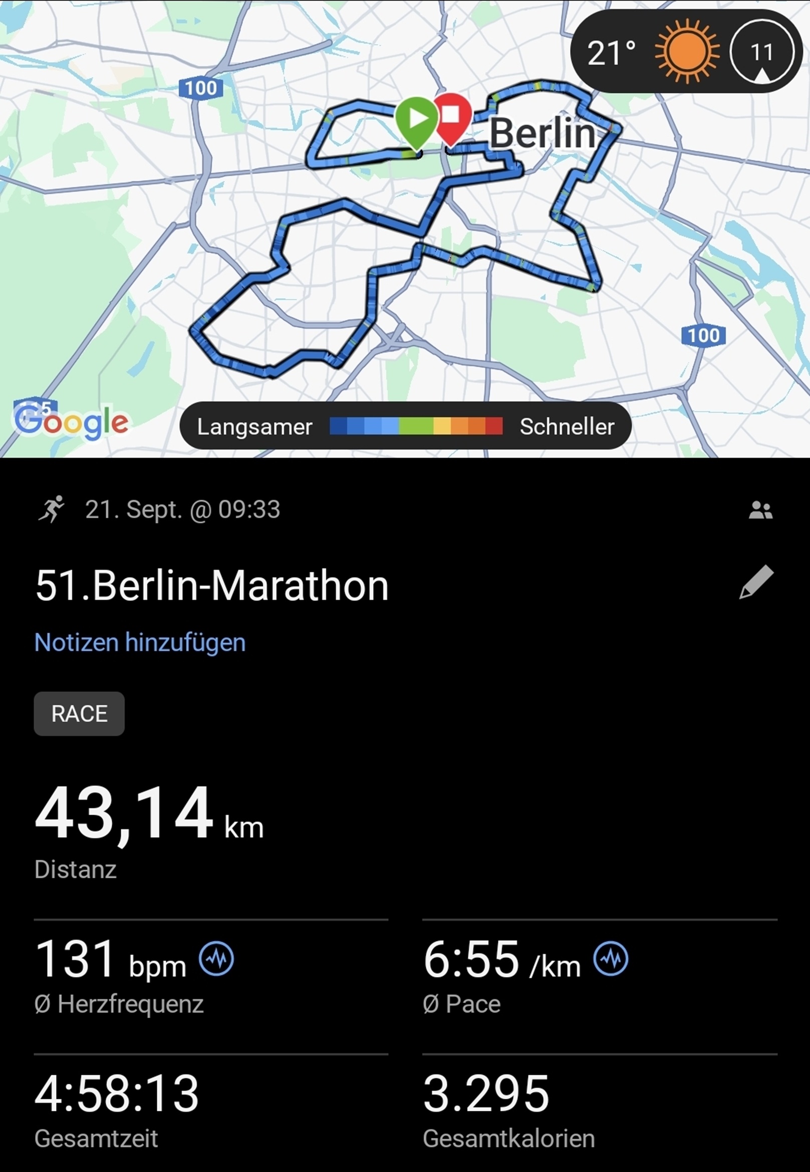 was ich so brauche, aber trotzdem war es heute mein langsamster Berlin-MA... mit Abstand. Immerhin die