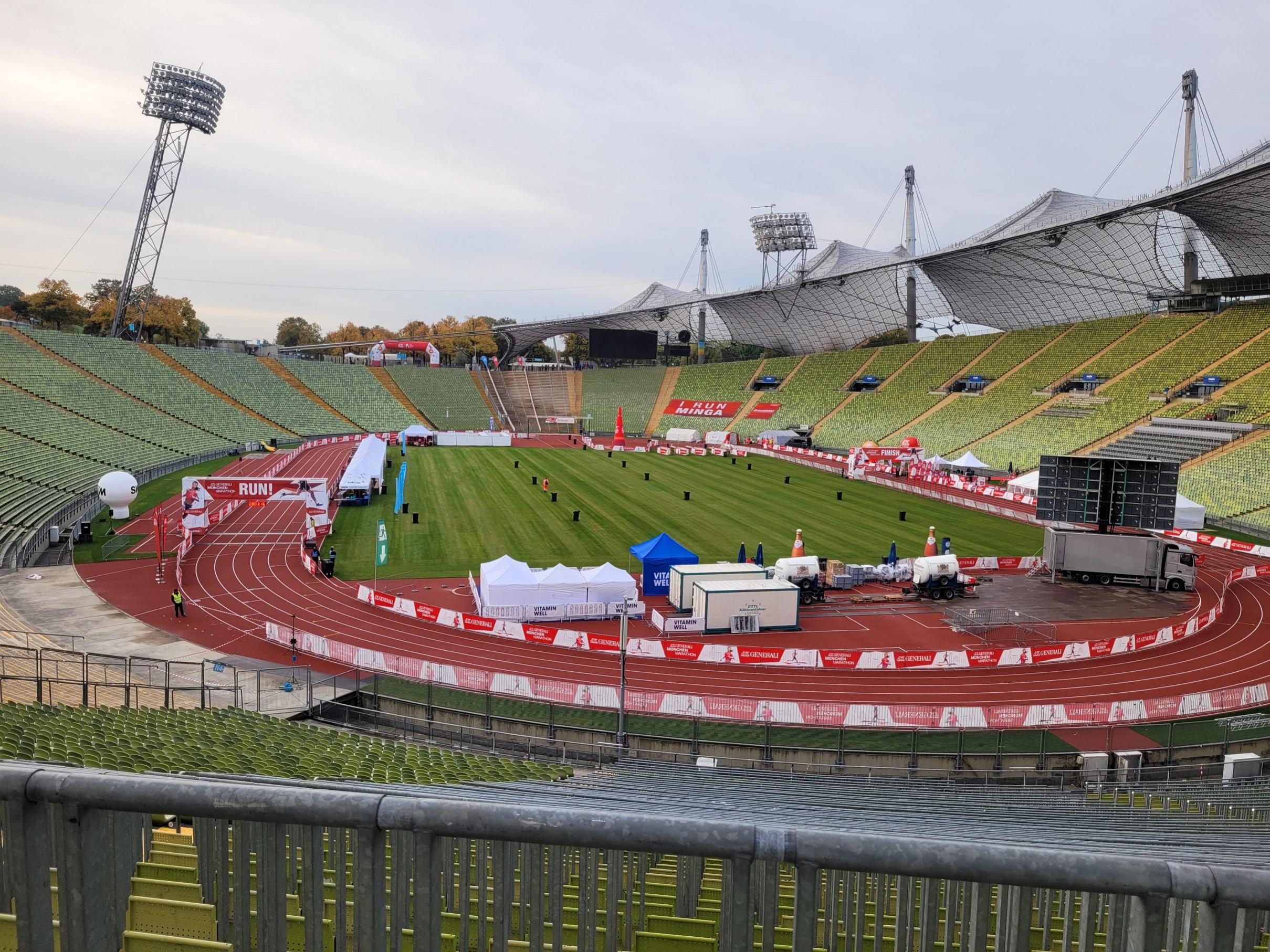 Rechts rein ins Stadion, durch das Marathontor, Lichtblitze zucken... die Musik powerd voll rein.. rechts rum auf die Tartanbahn - da ist das Ziel, ein Blick zur Uhr und ich schwebe die letzten 100Meter über die Linie und drücke meine Uhr ab.