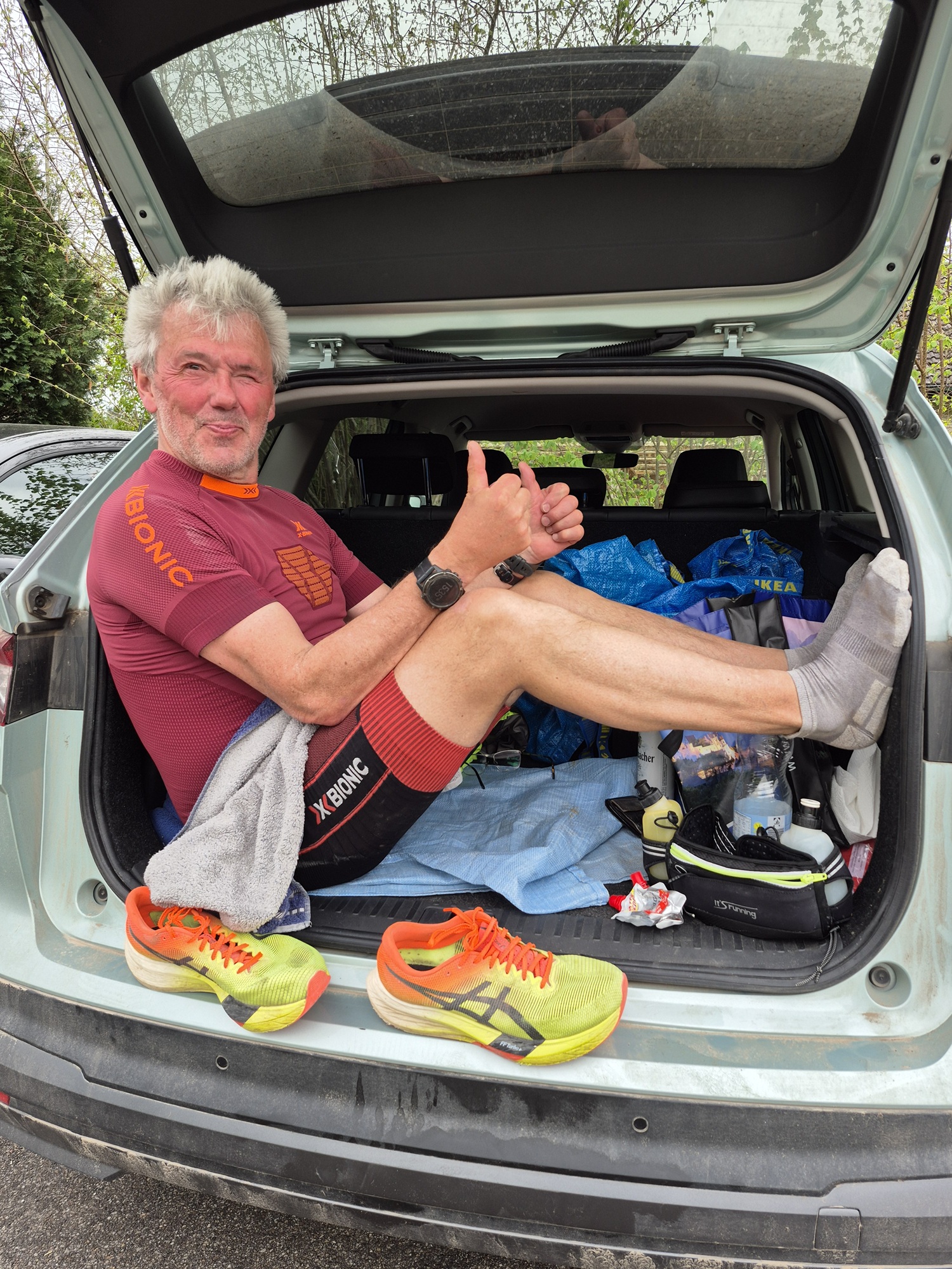 Es ist noch ca. 1,5Km bis zum ersten VP (am Auto), da läuft Georg an mir vorbei und ich