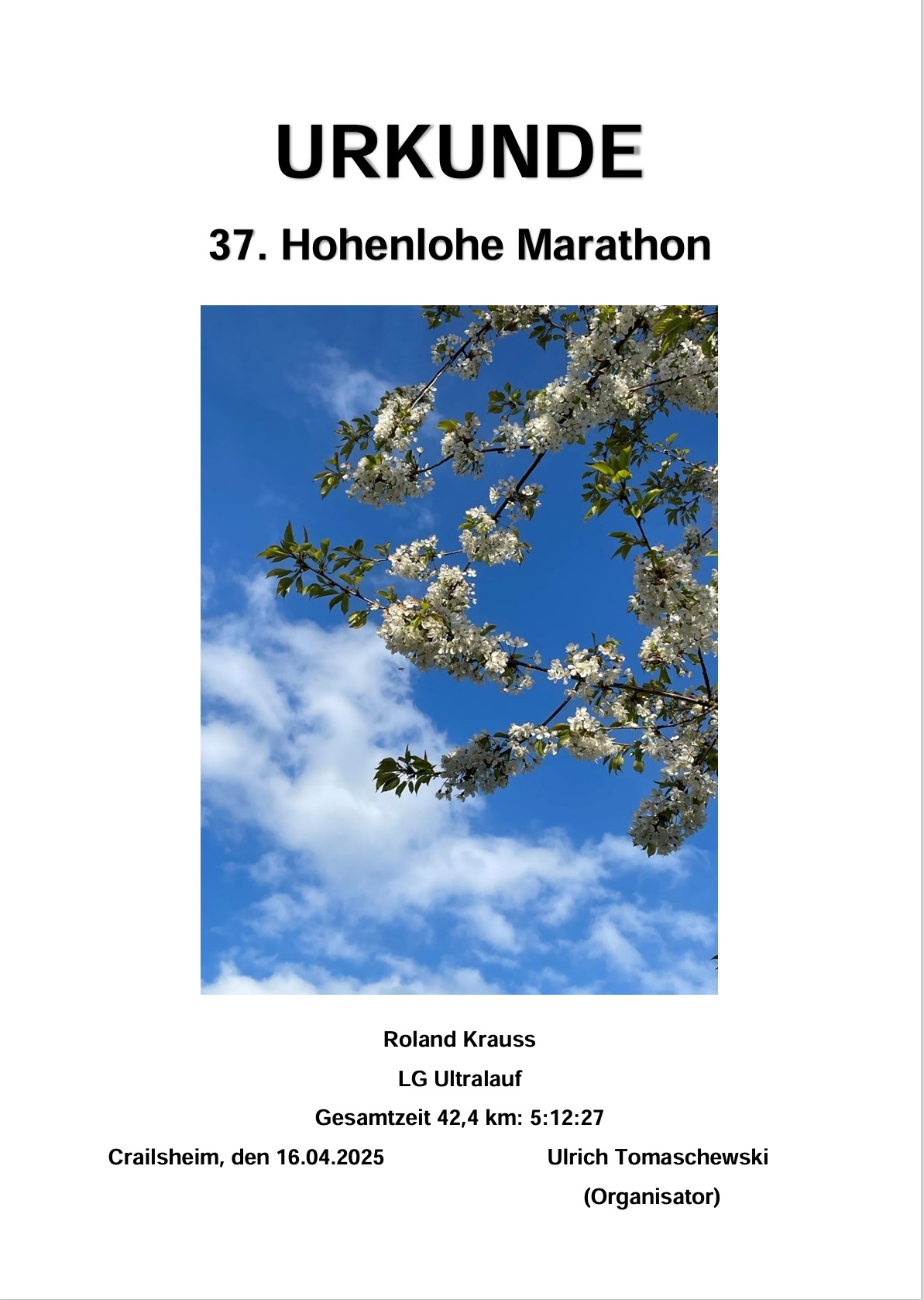 4Freut mich endlich mal wieder was von dir zu hören. Bei Uli will ich seit Jahren gerne mal starten. Aber gerade der Mittwoch ist bei mir schlecht. Erstens müsste ich Urlaub nehmen, zweitens ist da mein wöchentlicher Ausgleichssport mit Yogakurs angesetzt. Mal shen wie ich das mal interkriege, bis zur Rente ist es noch 5 Jahre, wer weiß was bis dahin noch alles passiert.