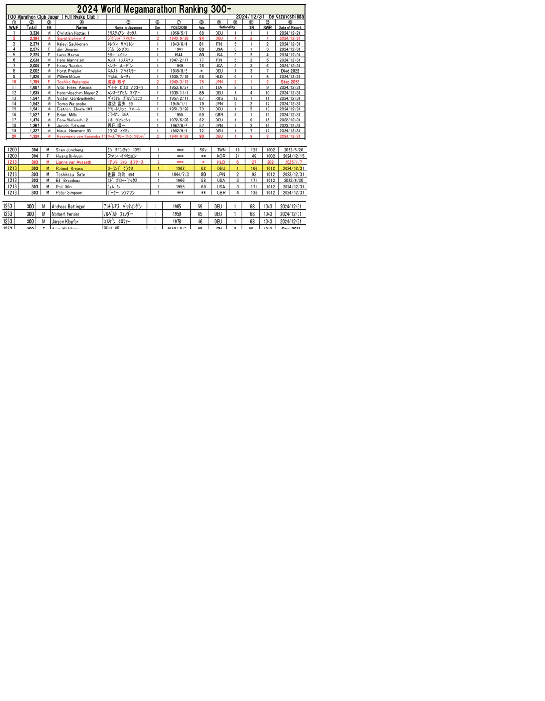 2024 wollte ich es eben wissen ob das noch so geht... in diesem Alter und so nebenher neben meinem Schichtdienst - der ja nun auch bald Geschichte ist (dazu demnächst mehr). Es hat sich letztendlich dazu entwickelt (war nicht so geplant) das es 52 in 52 Wochen wurden. Damit hatte ich mein "letztes großes Ziel" erreicht: Die Aufnahme in die Japanliste (Ranking WMMR 300+)