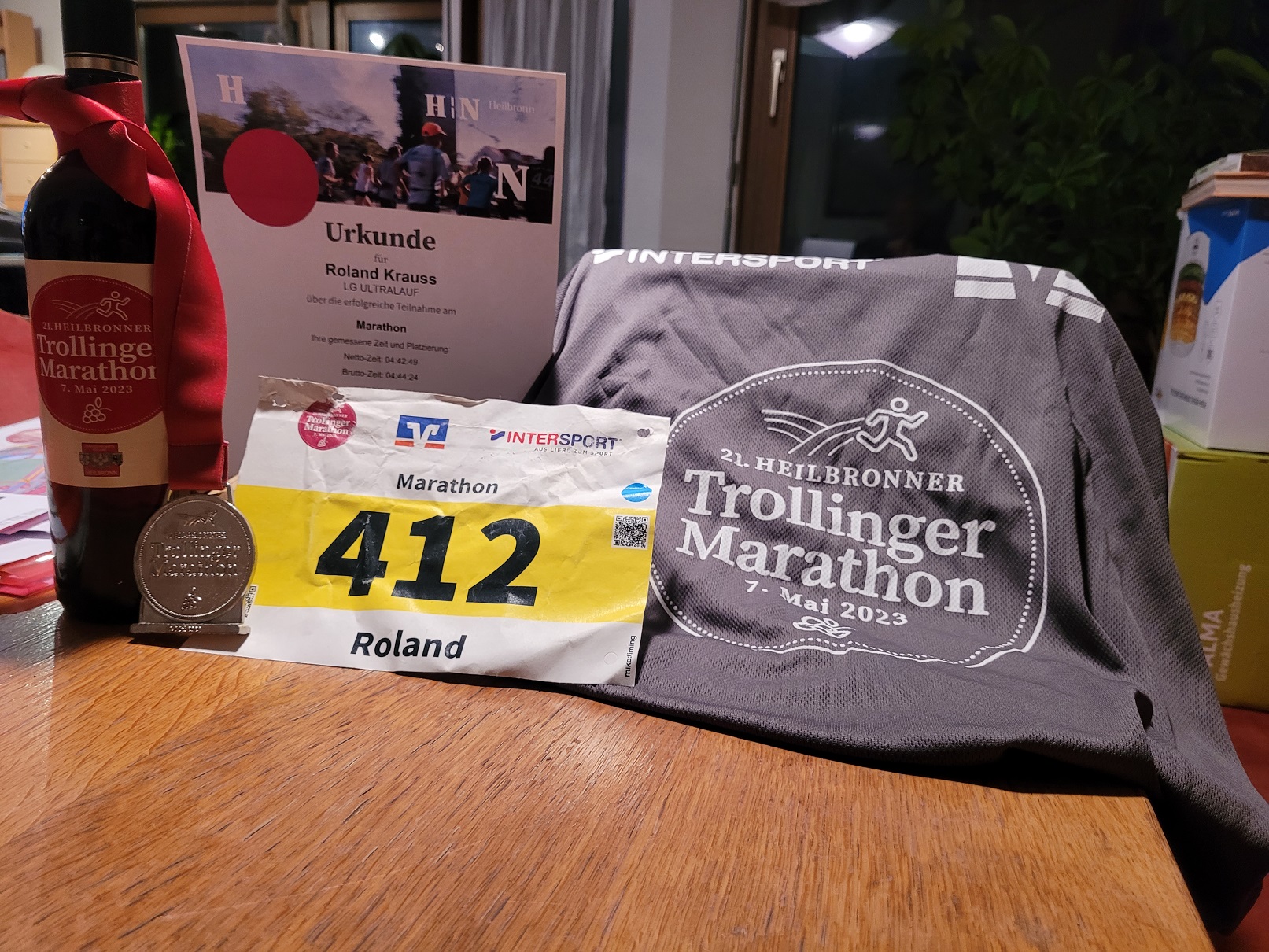 und verstaue den Trolliinger-Marathon-Wein und das Finisher-Shirt (beides schon im Anmeldepreis von 55€ drin). Anschließend