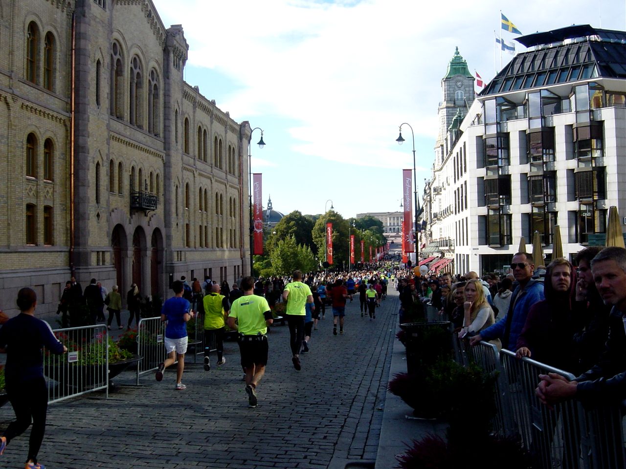 Zuschauer an der Laufstrecke gibt es außer am Rathausplatz und auf den letzten zwei Kilometern nicht viele. An den Hotspots werden die Athleten aber immer wieder mit „Heia! Heia!“ oder „Heia Norge!“ lautstark angespornt und der Zieleinlauf, nur 100 Meter vom Oslo Fjord entfernt, ist schon ein einmaliges Erlebnis. Ganz besonders bei einem so optimalen Wetter wie am Lauftag 2013.
