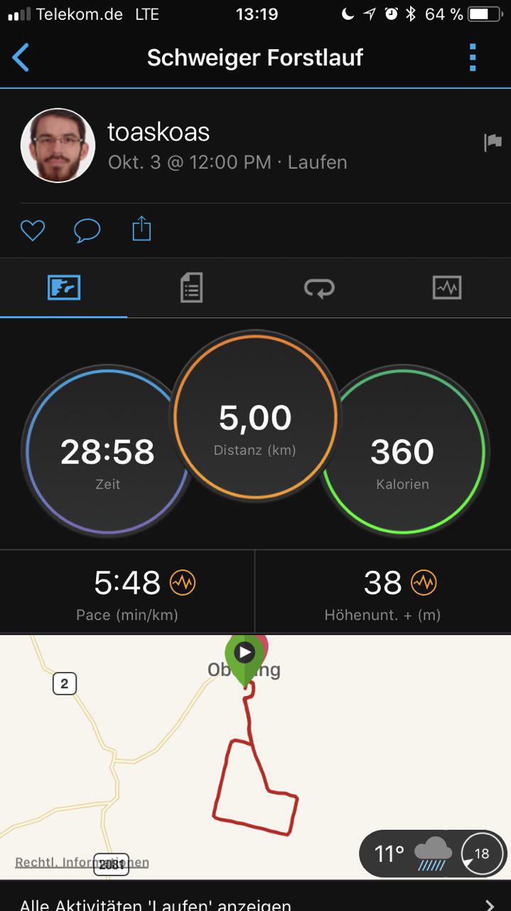 Es ging durch den Anzinger Forst. Ich wollte eine Zeit unter 25 schaffen, war aber dann doch drüber. Bin soweit aber ganz zufrieden.