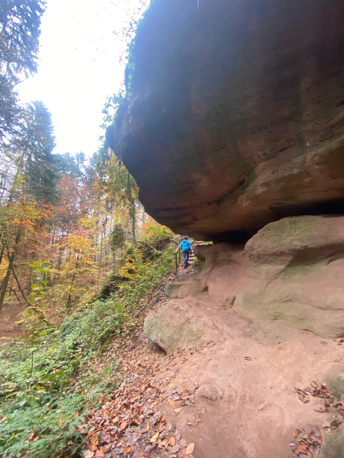 Jetzt wieder aufwärts... kreuz und quer durch den Wald, immer noch grau aber das bunte