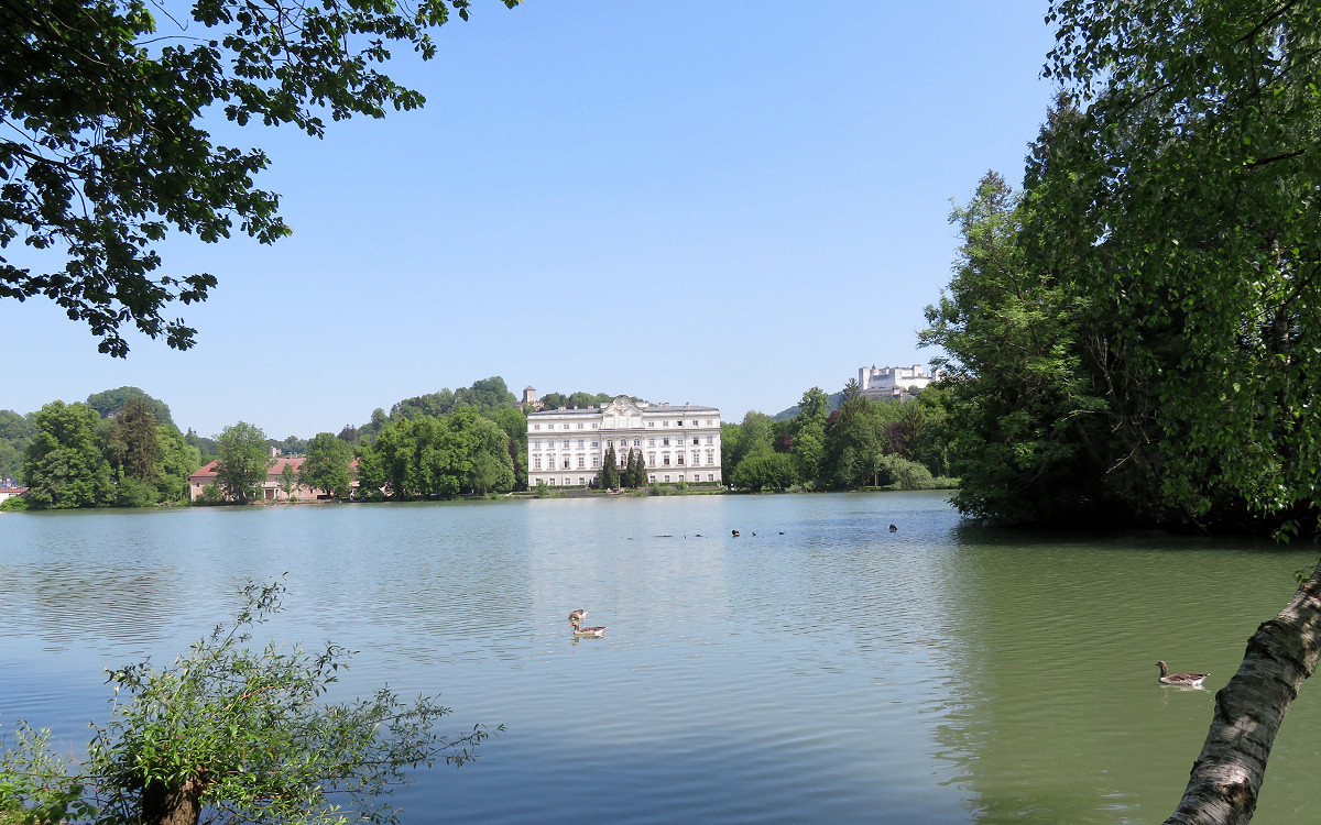 Von Hellbrunn aus geht es über Freilandstraßen im Zickzack zurück nach Norden, wo als nächster Höhepunkt der Leopoldskroner Weiher unmlaufen wird - diese Abschnitte entlang des Almkanals nach Norden (mit Blick auf Hohensalzburg) und am hübschen Ufer nach Süden (mit Blick auf Schloss Leopoldskron) waren für mich die schönsten Streckenteile. Der Weg zurück ins Zentrum gestaltet sich dagegen eher nichtssagend - die üblichen Vororte; erst ca. 3km vor dem Ziel fühlt man sich wieder "innerstädtisch", wenn es am Müllnerbräu entlang und durch die lange Unterführung in der Gaswerkgasse geht. Über die Lehener Brücke wechselt die Strecke dann zurück ans Ostufer der Salzach, und nach einer kurzen Uferpassage geht's ins Ziel. Von den Höhenmetern her ist alles sehr zahm, die sanfte Rampe der Lehener Brücke dürfte tatsächlich die größte Steigung des Kurses darstellen - überraschend in einer so von felsigen Hügeln und Bergen dominierten Stadt!