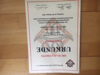 Ich hatte keine Ahnung von diesem ominösen Club, bis ich ein paar Läufe später jemandem mit dem Original-Vereinsshirt begegnete und mir dann klar wurde, dass manche mal so eben mindestens hundert Marathons oder gar noch längere Läufe innerhalb weniger Jahre ansammeln. Wie kann das gehen? Ich kann doch nicht mehr als 2-3 mal im Jahr eine solche „Mörderstrecke“ meinen Knochen zumuten.