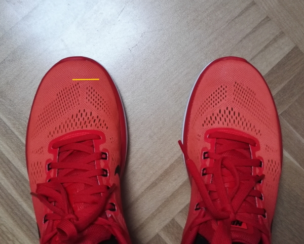 Man sollte ja mit den Zehen nicht ganz vorne ankommen, d.h. es sollte eine Fingerbreite Platz sein.