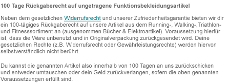 *(Gilt für Artikel aus dem Running-, Walking-, Triathlon- und Fitnesssortiment. Ausgenommen sind Bücher, Lifestyle- und Elektroartikel)"
