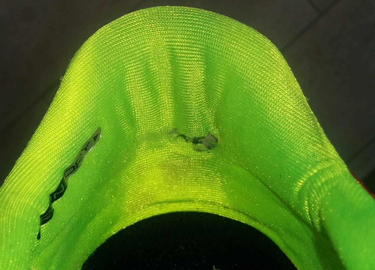 Heute hab ich festgestellt, dass beide Schuhe im Fersenbereich innen bereits schadhaft sind:Ich bin mit diesem Paar bisher genau 174 km gelaufen und verwende die Lightweigt-Trainer nur bei trockenem Wetter.