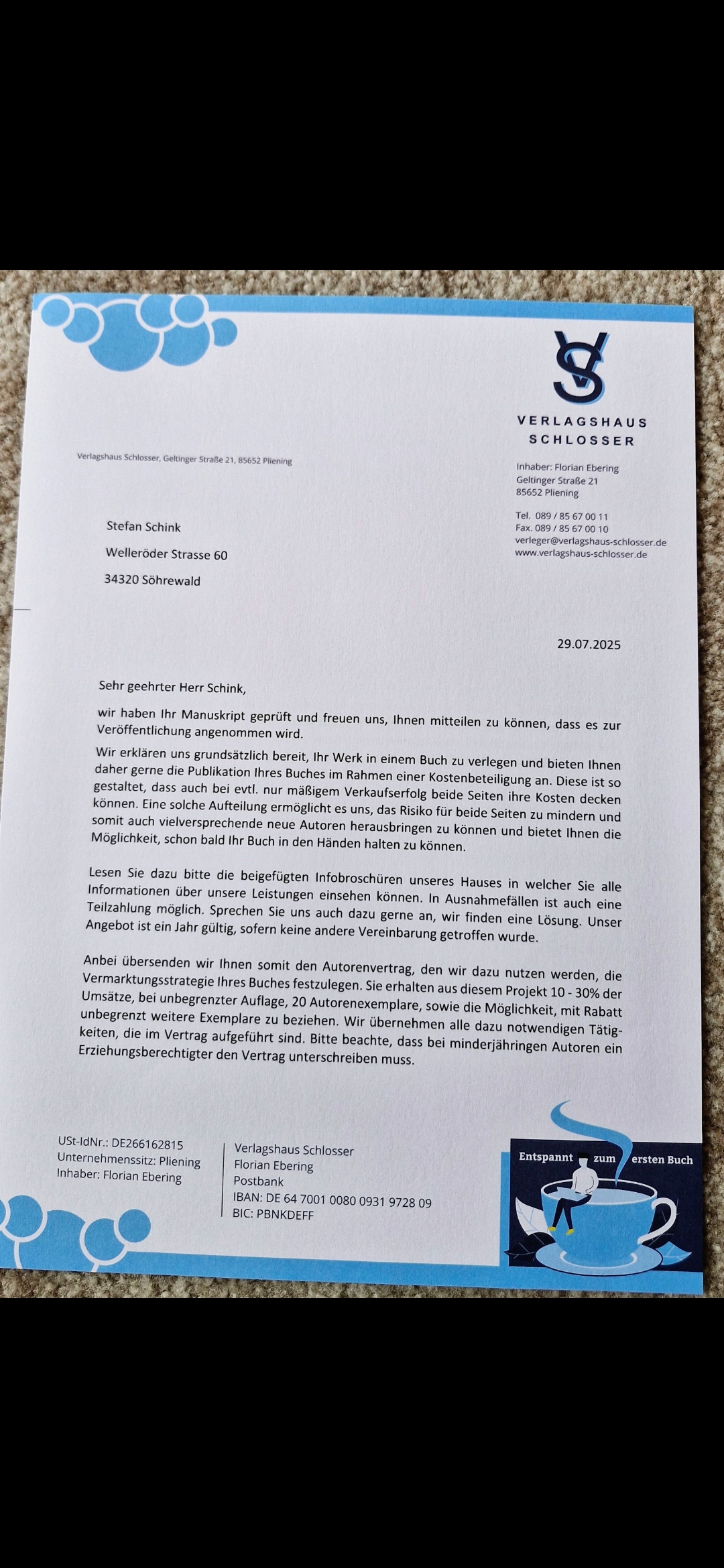 Ich muss dich korrigieren, die Verlage haben NICHT mich gebeten ein Manuskript einzureichen, sondern ich habe mehrere Verlage per Mail angeschrieben und nachgefragt, ob Interesse an einem solchen Buchformat besteht.