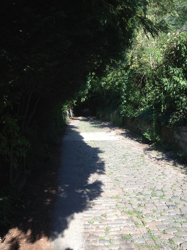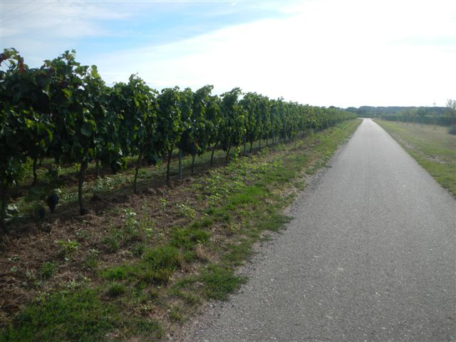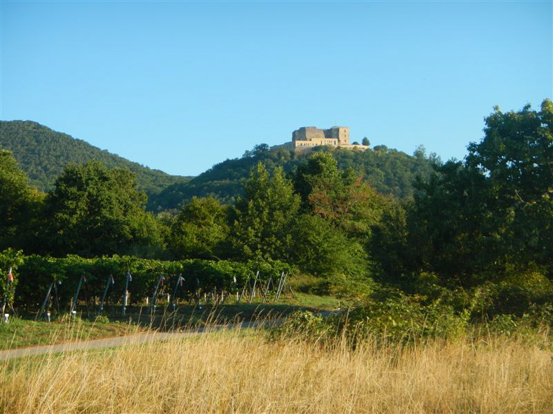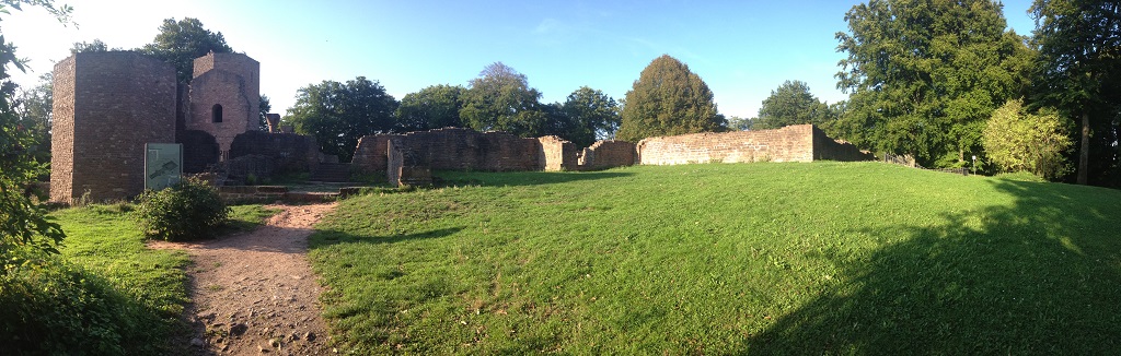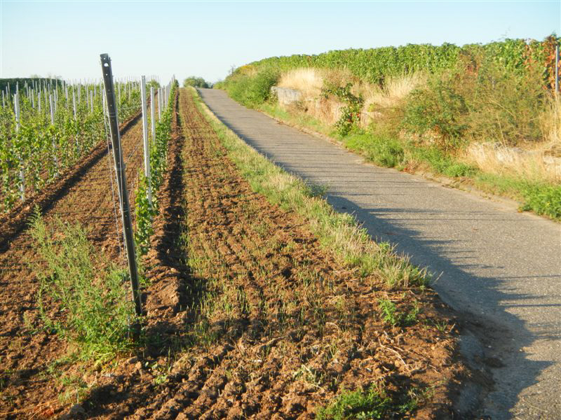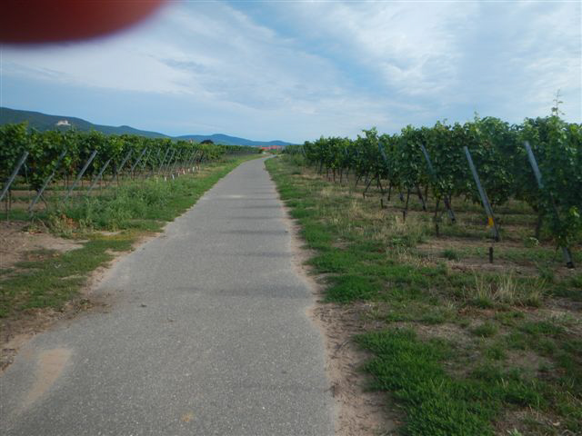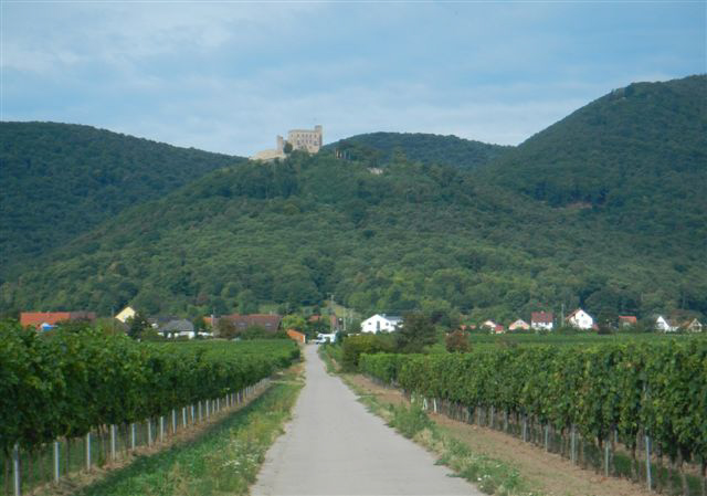 Die schmalen Wege wirken auf den Bildern ein wenig eintönig, aber tatsächlich kann alle paar hundert m abbiegen. Weiterhin sind sie unten in der Ebene schön flach, so dass man gut laufen und nebenbei den Ausblick hinauf zum Hambacher Schloss mitnehmen kann.