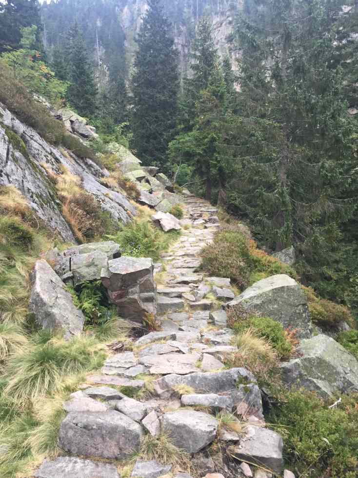 Wer - wie ich - nicht ganz so sportlich ist, nimmt den Weg daneben. Bild 4 und 5 zeigen den Trail. 2/3 der Strecke waren "laufbar". Bei Start auf 700 m waren es noch 600 HM, so dass man auch die Gehpausen zum Training zählen sollte...