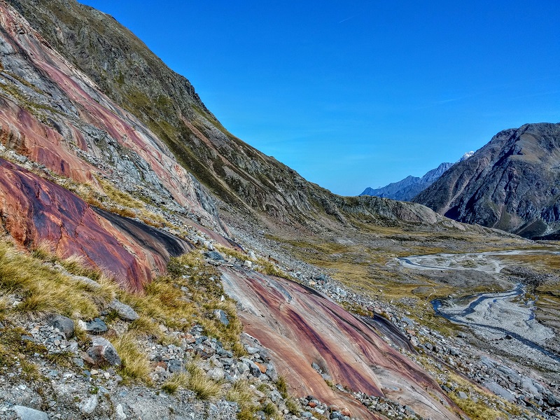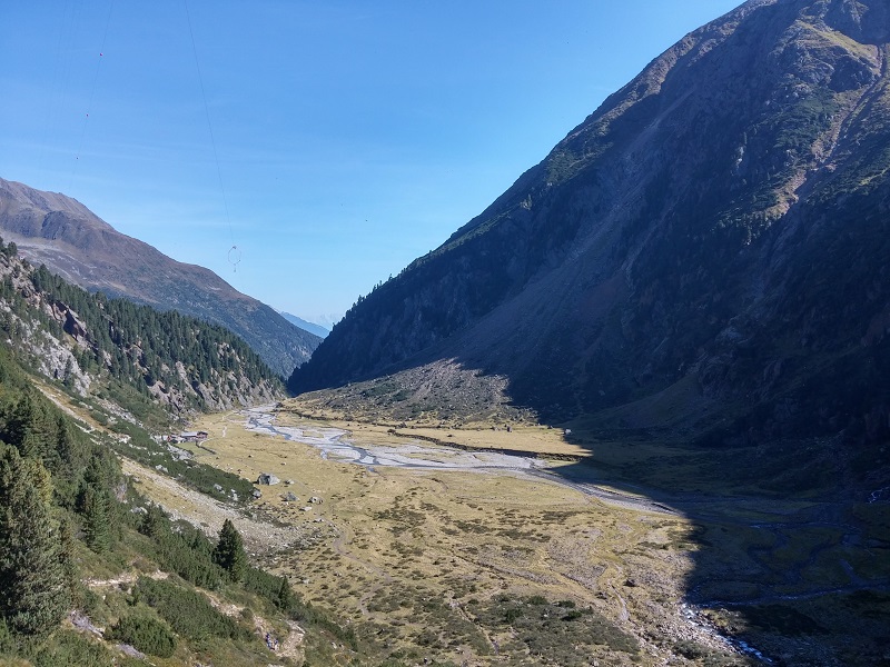 Blick hinunter zur Sulzenau Alm Blaue Lacke, oberhalb der Sulzenauhütte viel Rot - bis 1990 ist hier noch der Gletscher gewesen... Am Ziel, bevors wieder runter geht - Sulzenauferner auf 2.500m