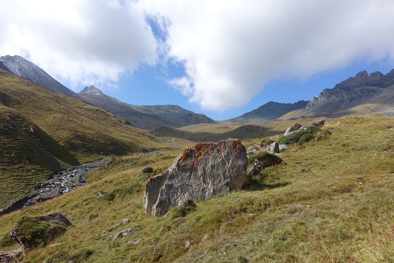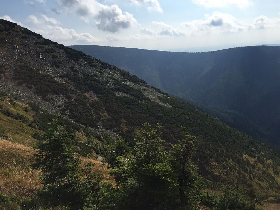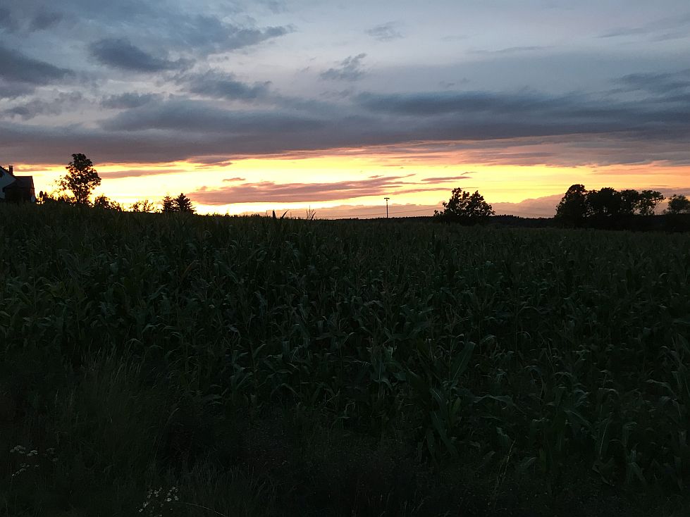 19.00. Hier wurde mir klar, dass ich es nicht bis ganz oben schaffen würde und trotzdem im Dunkeln ankommen würde. Bei der anschließenden Stolperei habe ich bereut, dass ich wieder einmal das Lämpchen vergessen hatte. Kein Grund zur Sorge. Wenn die Wölfe in der Ferne heulen, sind die ja noch ein Stück weg.
