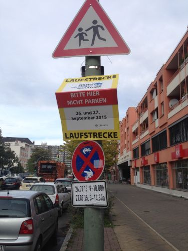 Und ich war heute vormittag in Berlin, die Streckenschilder für den Berlin-Marathon sind schon aufgestellt