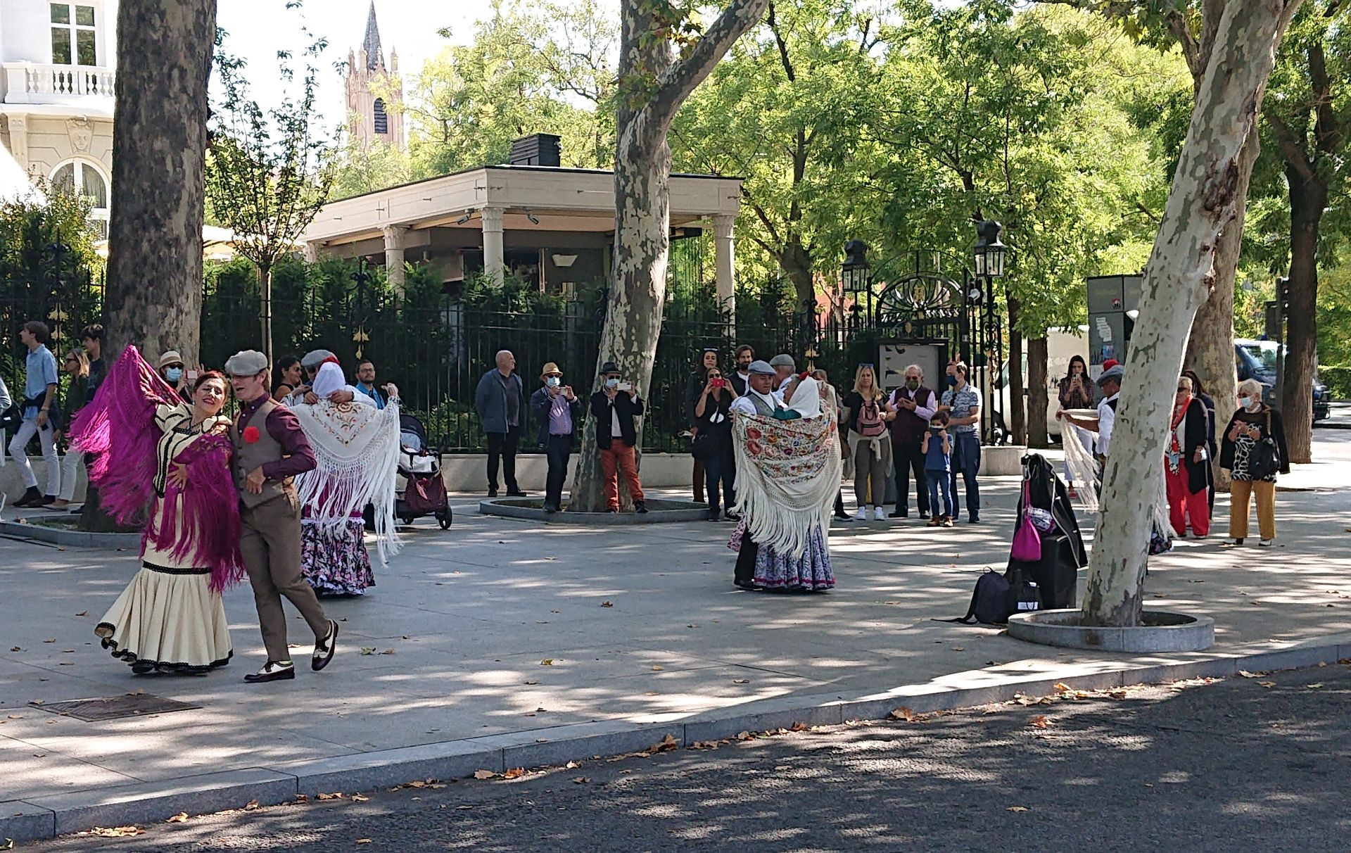 Am Neptunbrunnen führte eine traditionelle Gruppe zu spanischen Gitarren (leider aus der Jukebox) und bunten Kleidern verschiedene Tänze auf. Wirklich schön anzusehen und zu hören. Nach einem Abstecher in die tolle Innentadt zu einem außerordentlich leckeren Schmauß ging es entlang prachtvoller Wohnblöcke und den Retrio-Park hindurch zurück zum Bahnhof Atocha.