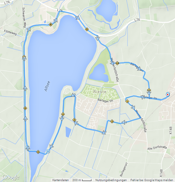 auch wenn es zunächst ja nicht danach ausgesehen hat, habt Ihr ja doch noch ein paar Bilder vom Laufen bzw. den wunderschönen Laufstrecken gepostet. Allerdings ging es doch lt. Titel des Fadens darum, ein Foto vom heutigen Training (!) einzustellen, und entsprechend habe ich heute Morgen meine Kamera auf die Trainingsrunde am Alfsee, d.h. 11,6 km zügig @ 4:45 min/km, mitgenommen.
