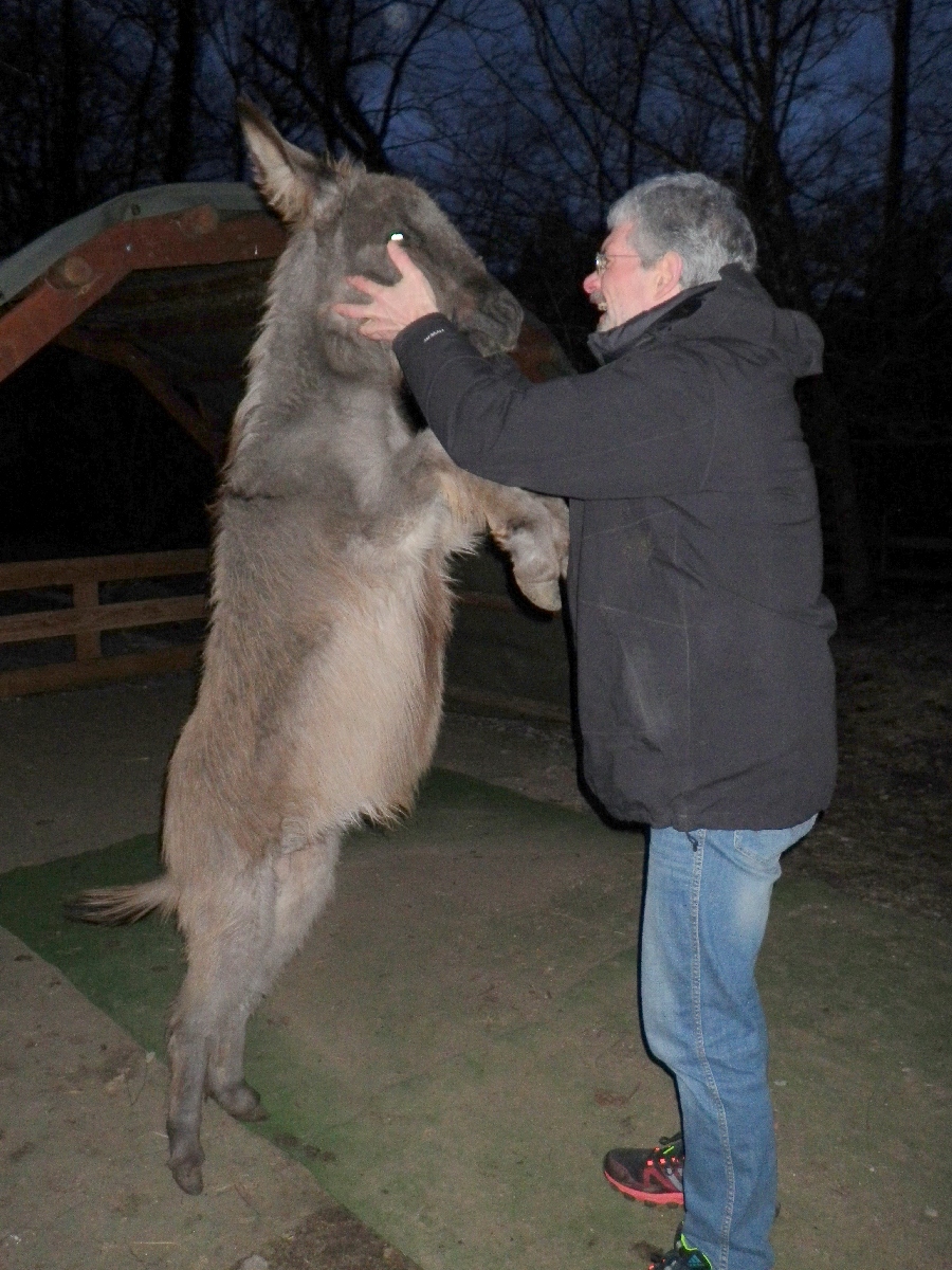 Das Eselchen übrigens ist etwa 1 Jahr alt. Der und sein Kumpel sind total verspielt und süß. Einziger Nachteil, der süße hat an allem rum geknabbert, was er zwischen die Zähne bekommen hatte. Ob das meine Jacke war oder mein Daumen war ihm egal