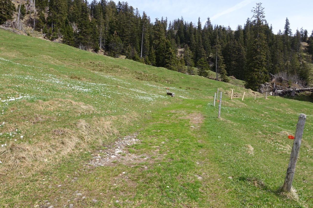 Interessanterweise war nichts ausgeschildert, dafür aber innerhalb des Areals ein kleiner Parcour/Weg abgesteckt, der dann mitten im Wald endete, Allerdings nur 20m vom nächsten Waldweg entfernt.