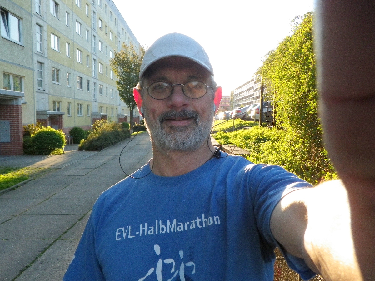 Und abschließend noch ein Selfie: Das Shirt war mein erstes Laufshirt, das ich bei nem Wettkampf bekam. Bei meinem zweiten Wettkampf, dem Leverkusener Halbmarathon. Sehr schön dort :)