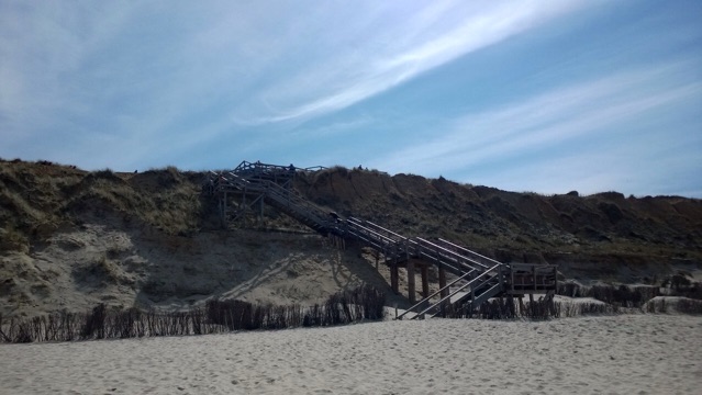 Auf dem Rückweg hab ich dann einen kleinen Bergsprint die Treppe rauf eingelegt. Dann ging es oben noch 2 km zurück über einen sandigen Dünenweg - autsch.