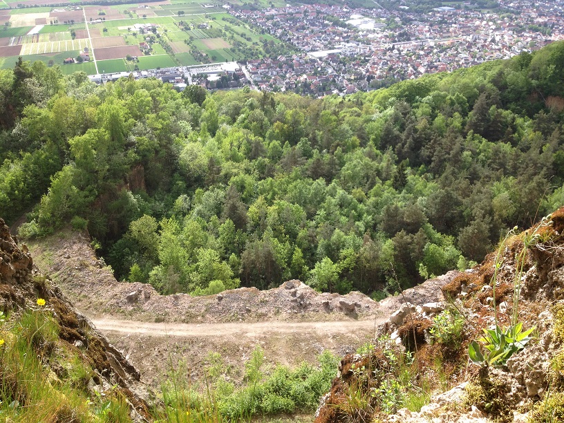 Etwa ein Kilometer später steht man dann an der Oberkante des Steinbruchs... direkt (!) an der Oberkante... nur ein dünnes Stahlseil und 10m Weg als Absicherung.