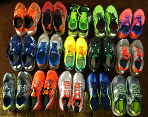 Ich hatte Anfang des Jahres sechs Paar, dann hab ich mir das siebte Paar gekauft und als ich damit nachhause kam, gleich mal drei ältere Paare entsorgt. Somit bin ich bei vier angelangt, übrigens vier unterschiedliche Hersteller.