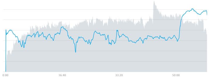 dicke_Wade hat geschrieben:Ja kann sehr unzuverlässig sein. Und wie Frau Kobold anmerkte, der Sprung bei 44 min ist offensichtlich irregulär. Am Ende gibt's nochmal Sprünge. Es wurde hier schonmal ein Test verlinkt (finde ich nicht mehr :noidea: ), jedenfalls wurden die Aufzeichnungen schlechter, je höher das Tempo war. Die Tester vermuteten, dass die stärkere Armbewegung die Uhren stört. Ich hab beim Radeln auch seltener "Störungen" als beim Laufen.